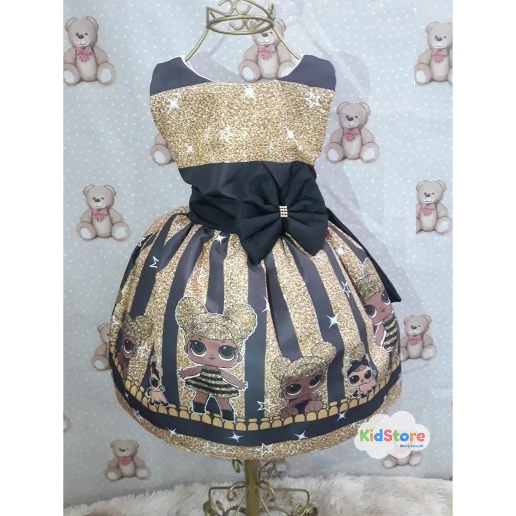 Vestido infantil cheap preto e dourado