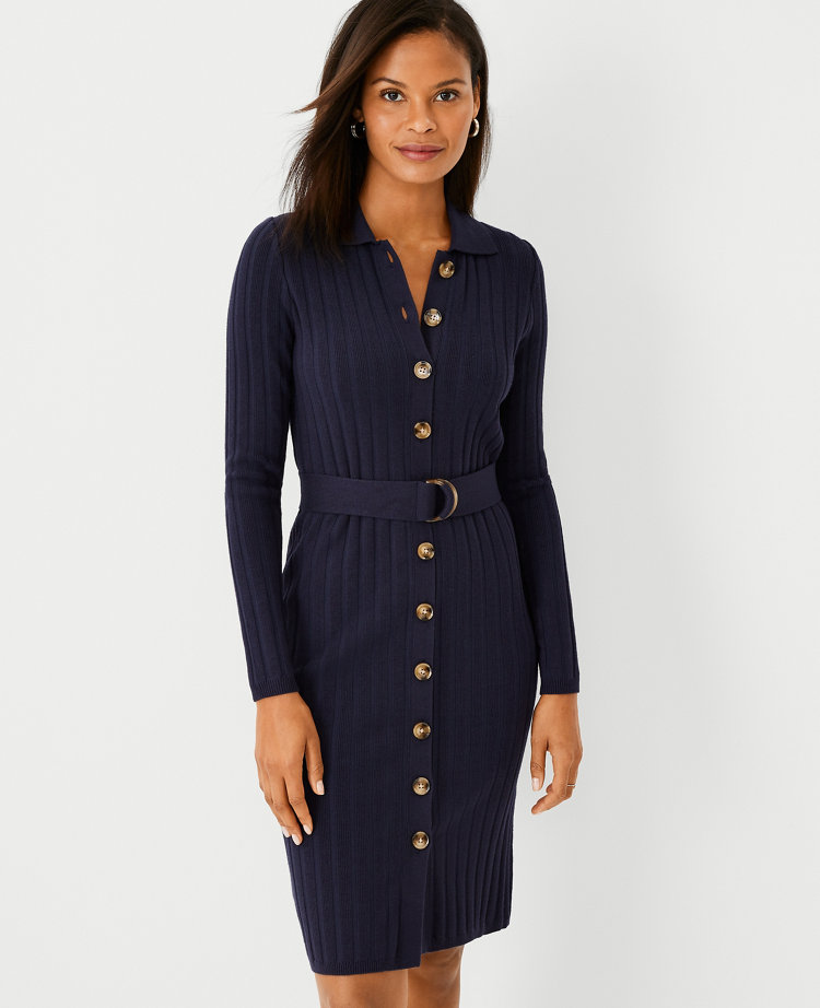 Belted button cheap front sheath dress